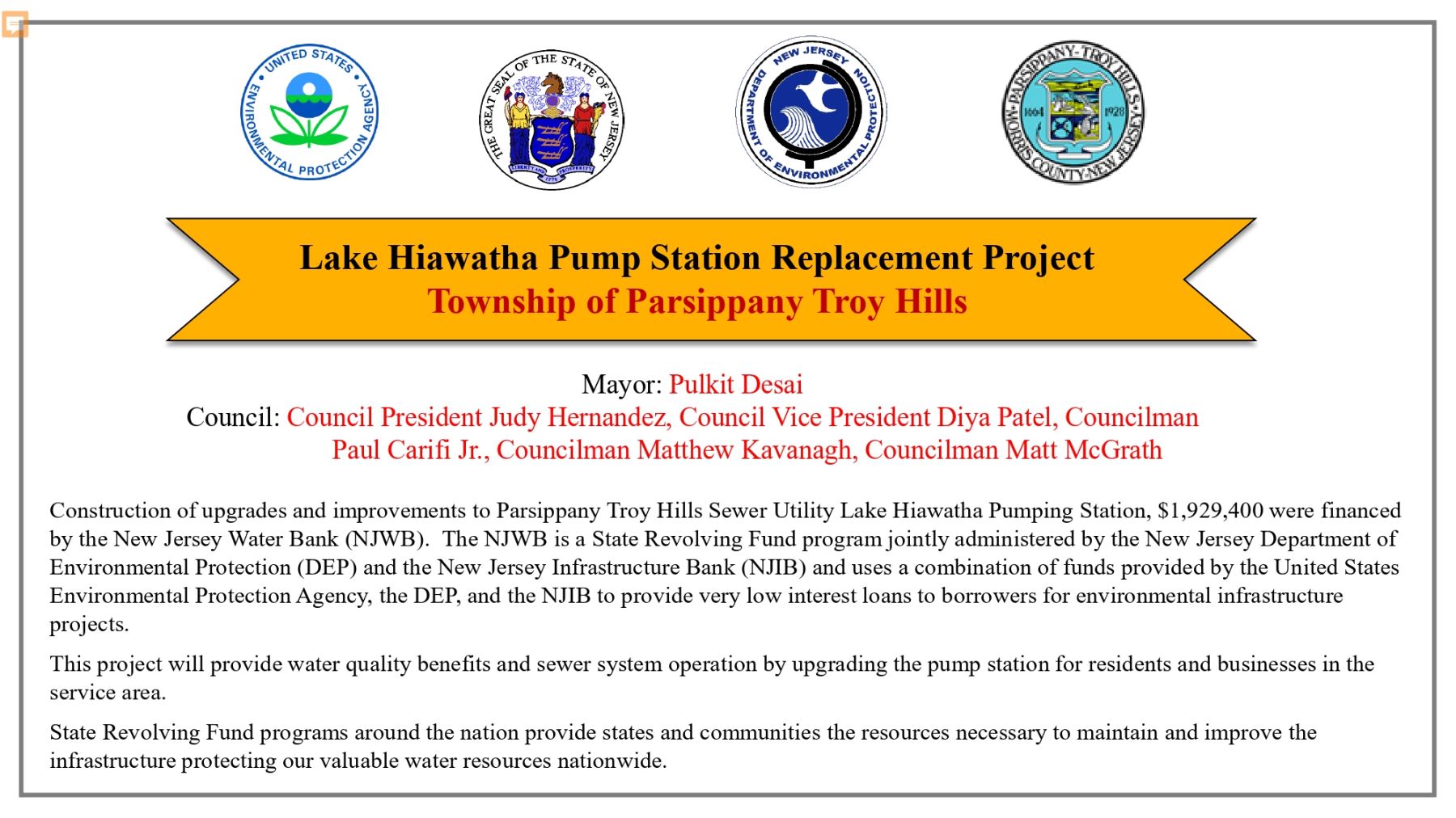 The Township of Parsippany-Troy Hills owns and operates the sanitary sewer collection system and wastewater treatment plant. The Lake Hiawatha area of the Township was served by Pump Station No. 4.