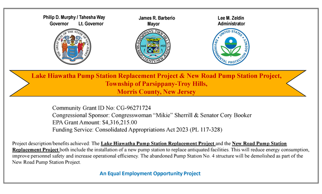 The Township of Parsippany received a $4,316,215 Grant from the EPA