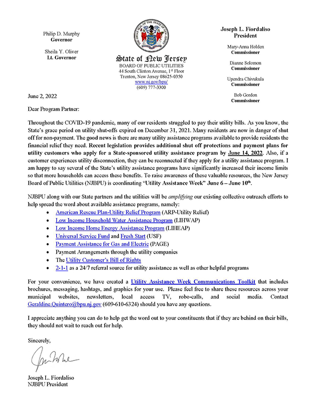 State of New Jersey Utility Assistance Programs